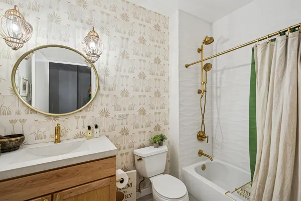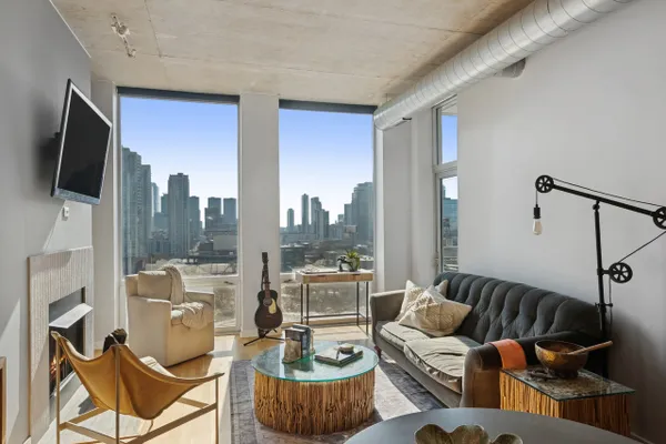 This is the River North property you have been waiting for, located right on the river and park with unbelievable South skyline and water views. The large kitchen is the heart of this home with its generously sized custom butcher block island, soapstone counters, deep farm sink and separate bar area. This stylish renovation features designer touches throughout, Porcelanosa fireplace surround, brick floor and wall accents, beautiful natural fiber wall covering, motorized window treatments and more. Soft as a slipper newly installed wall to wall sisal in both bedrooms. Both full bathrooms are newly renovated and pristine! 2nd lofted bedroom is fully enclosed. South facing private balcony enjoys A+ views! In unit laundry. Full service building with 24 hr. door staff, gym, on site management. Garage parking additional. We look forward to your visit!