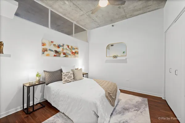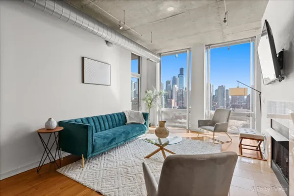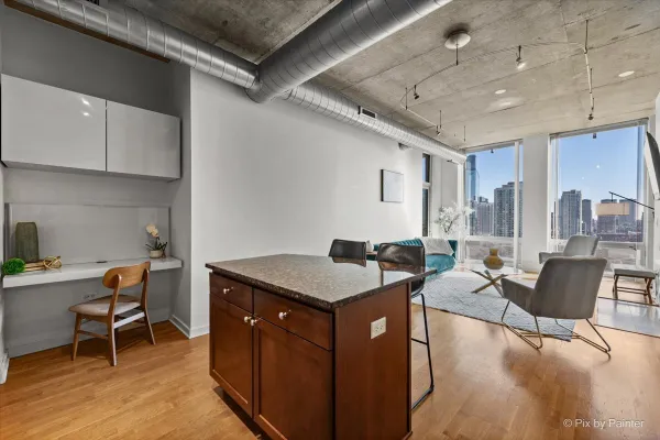 Beautiful 2 bed, 2 bath home in a highly desirable River North building in prime Kingsbury Park. This light-filled residence features soaring 10-foot ceilings and oversized windows showcasing stunning skyline views. The open living space offers hardwood floors, a gas fireplace, and access to a private balcony, perfect for relaxing or entertaining. The kitchen is well-appointed with granite countertops and ample storage. Recently custom painted with high-end low-voltage track lighting throughout. Additional highlights include in-unit washer and dryer and a functional, spacious layout. Deeded garage parking + $25k. Full-amenity building with 24-hour door staff, on-site management, and a fitness center. Unbeatable location just steps to restaurants, shops, nightlife, public transportation, and the dog park.